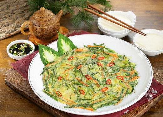 韩国料理当中油煎饼料理是其中一个重要的组成部分,在中国据说也叫“水饼”。今天我们要介绍给大家的是—韭菜水饼。因为是用油煎出来的,因此味道非常香醇,因此最能够刺激人的嗅觉,人们从大老远地就可以闻得到这种煎水饼的味道,所以难以控制诱惑,尤其是在阴雨天,韩国人最喜欢吃这种煎饼,并且喜欢和周围的人一起分享,以消除因为阴沉的天气而带来的心情上的郁闷。因此煎饼也是韩国人在夏季的汛期最常吃的饮食之一。